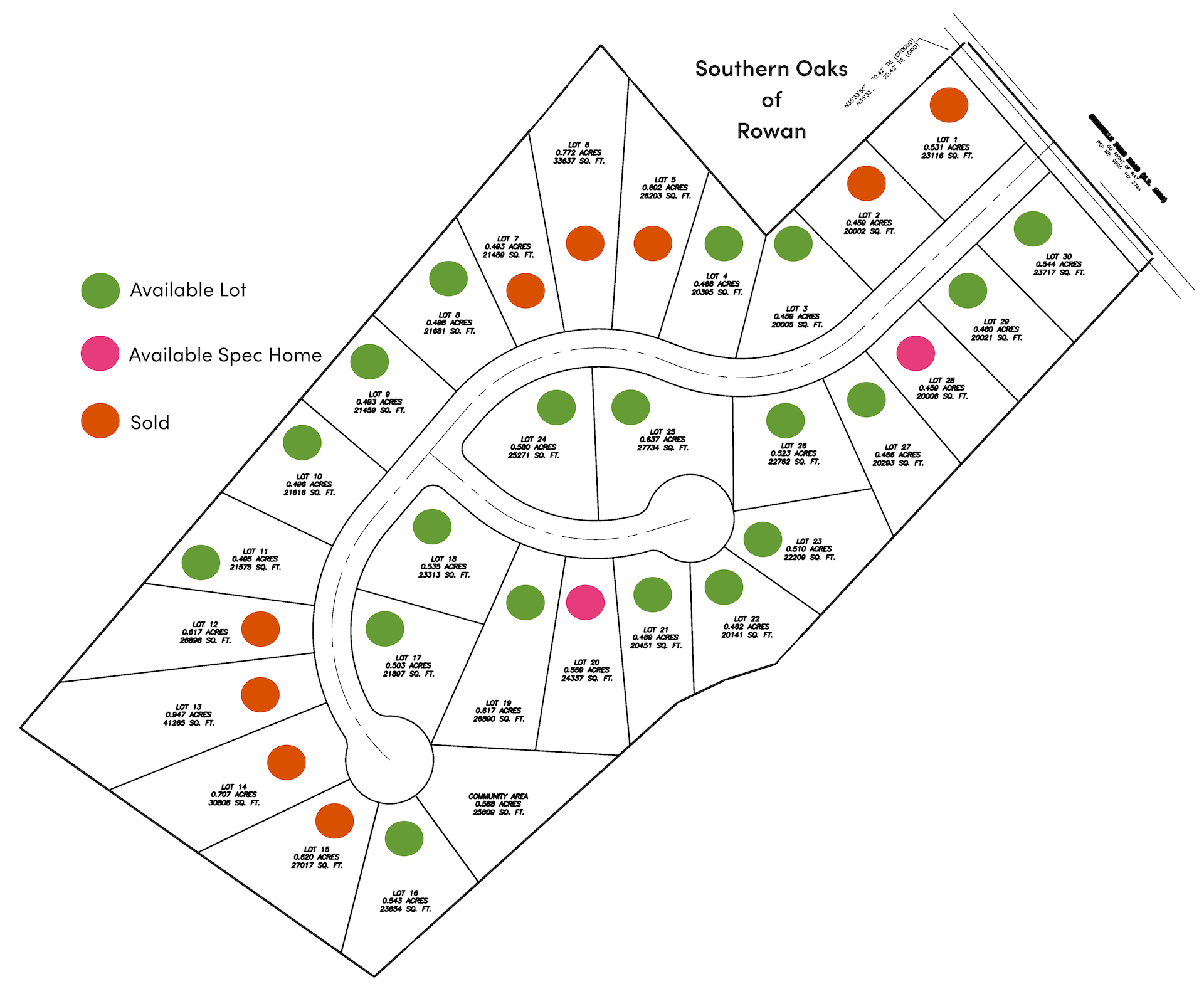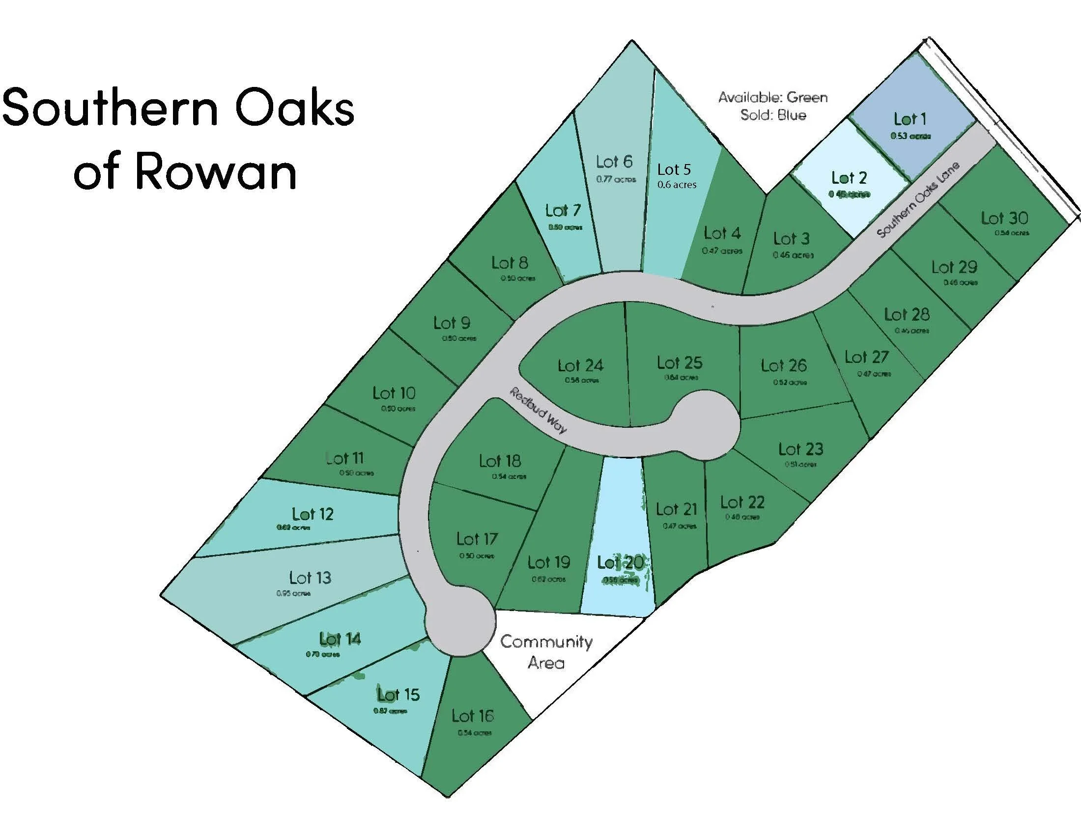 Southern Oaks of Rowan is a new community located off of Sherrills Ford Road we are excited to offer to our clients. This thirty home community features lots ranging from half to three-quarters of an acre and provides an excellent balance between convenience and quietness being located just a few short minutes out of Salisbury city limits.